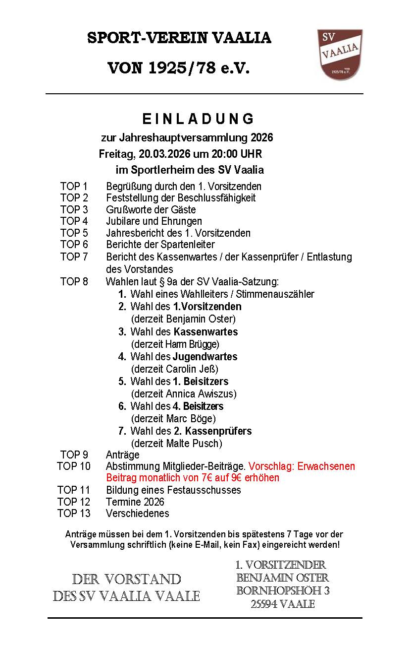 Der Sportverein Vaale ist ein etablierter Verein in der Gemeinde Vaale, der eine breite Palette an sportlichen Aktivitäten anbietet. Besonders bekannt ist der Verein für seine zahlreichen Hallensportarten und die Fußballsparte. In der Sporthalle des Vereins finden regelmäßig Fitness-Sporteinheiten statt. Für Freizeitsportler gibt es zudem verschiedene Kurse wie z.B. Streetdance oder Zumba. Auch für Kinder und Jugendliche gibt es ein breites Angebot an Aktivitäten, wie beispielsweise die Kinderturngruppe oder das Eltern-Kind-Turnen. Neben den Hallensportarten ist der Sportverein Vaale auch für seine starken Fußballteams bekannt. Die Mannschaften, bestehend aus den Fussballern aus Vaale, Wacken und Schenefeld, nehmen regelmäßig am Ligabetrieb teil und ha#ben in der Vergangenheit schon einige Siege errungen. Der Verein legt großen Wert auf Nachwuchsförderung und bietet daher auch eine Vielzahl an Jugendfußballmannschaften an. Der Sportverein Vaale ist für alle Sportbegeisterten ein Anlaufpunkt in der Region und trägt dazu bei, dass Bewegung und gemeinschaftliches Miteinander gefördert werden. Wer Interesse hat, kann gerne an einem Probetraining teilnehmen oder sich einfach mal vor Ort umschauen.
